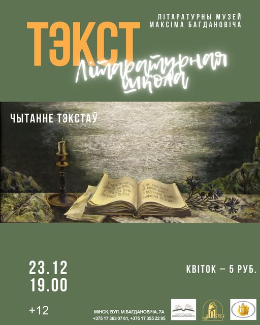 У аўторак, 23 снежня, у музеі Максіма Багдановіча адбудзецца новая сустрэча літаратурнай школы "Тэкст", прысвечаная чытанню тэкстаў.