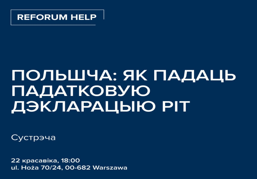 У сераду, 22 красавіка, Reforum Help ладзіць у Варшаве сустрэчу «Польшча: як падаць падатковую дэкларацыю PIT»