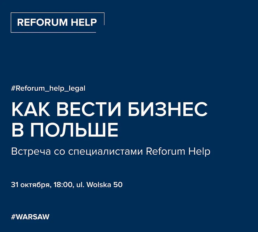 Спецыялісты прававой службы Reforum Help раскажуць пра нюансы вядзення бізнесу ў Польшчы і адкажуць на пытанні.