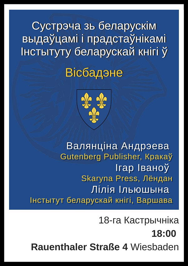 У суботу, 18 кастрычніка, у Вісбадэне адбудзецца сустрэча з беларускімі выдаўцамі і прадстаўнікамі Інстытуту беларускай кнігі.