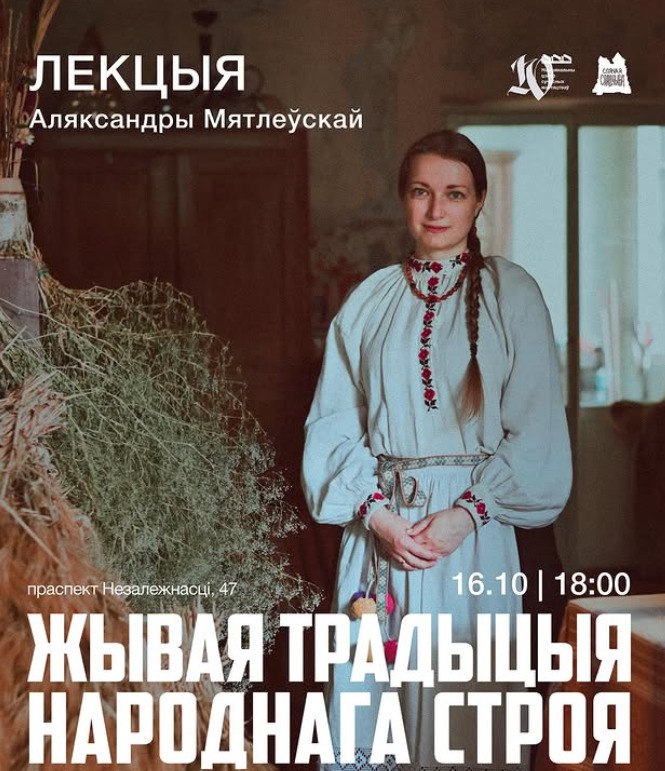 У чацвер, 16 кастрычніка, у Нацыянальным цэнтры сучасных мастацтваў адбудзецца лекцыя даследчыцы-аматаркі, рэканструктаркі і майстрыні традыцыйнага строю Аляксандры Мятлеўскай «Жывая традыцыя народнага строя».