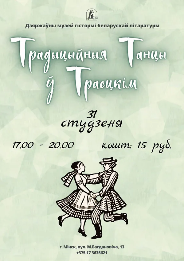 У суботу, 31 студзеня, у музеі гісторыі беларускай літаратуры - вялікая вечарына традыцыйных танцаў.