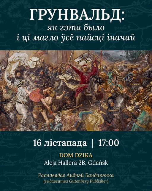 У нядзелю, 16 лістапада, у Гданьску адбудзецца лекцыя Андрэя Бандарэнкі «Грунвальд: як гэта было і ці магло ўсё пайсці іначай».