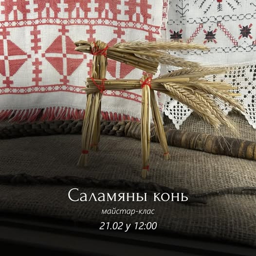 21 лютага філіял Веткаўскага музея ў Гомелі запрашае на майстар-клас па вырабе саламянага каня з прыгожай грывай з жытніх каласкоў.
