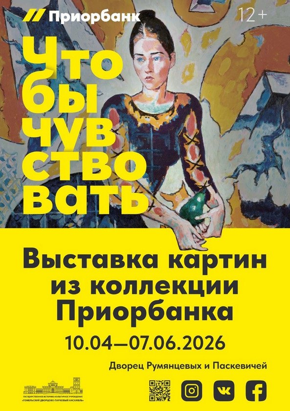 У чацвер, 9 красавіка, у палацы Румянцавых і Паскевічаў адкрываецца выстава беларускіх мастакоў другой паловы XX — пачатку XXI стагоддзя «Каб адчуваць» з калекцыі Прыёрбанка, якая стваралася на працягу 30 гадоў.