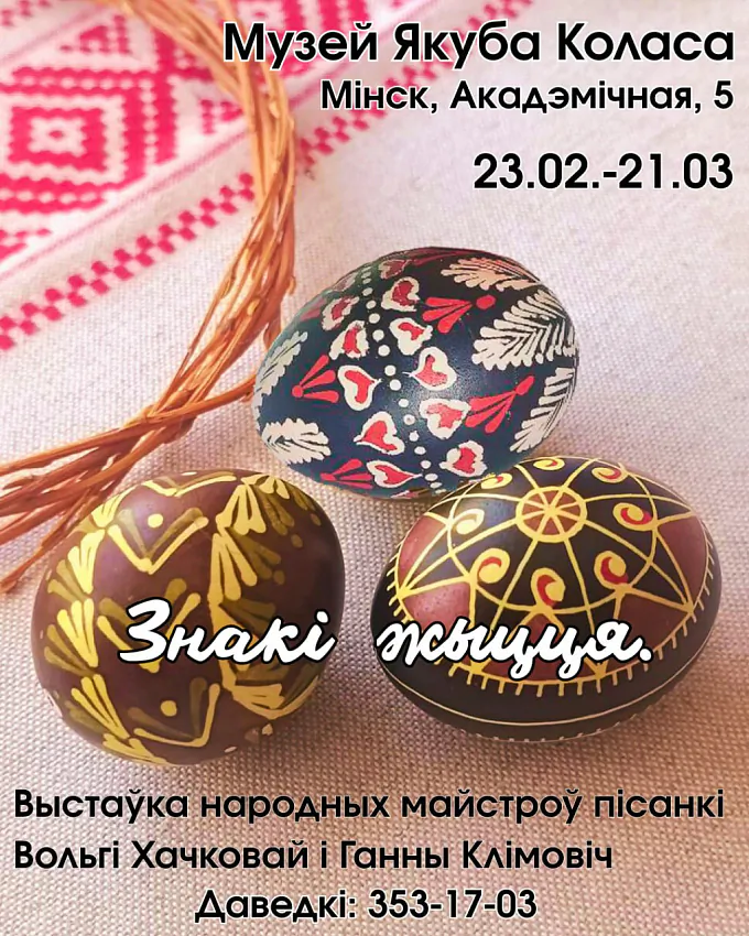 У сераду, 25 лютага, у музеі Якуба Коласа адкрываецца выстава народных майстрых пісанкі Вольгі Хачковай і Ганны Клімовіч «Знакі жыцця».