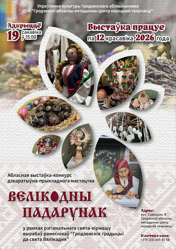 19.03.2026 - 12.04.2026 15:00 - 17:00 Абласны цэнтр народнай творчасці (вул. Савецкая, 8) Бясплатнае