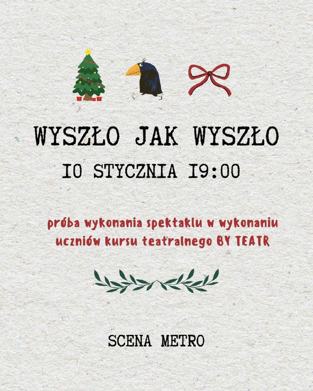 10.01.2026 19:00 - 20:30 Scena Metro (Metro Bródno 11) 30 злотых
