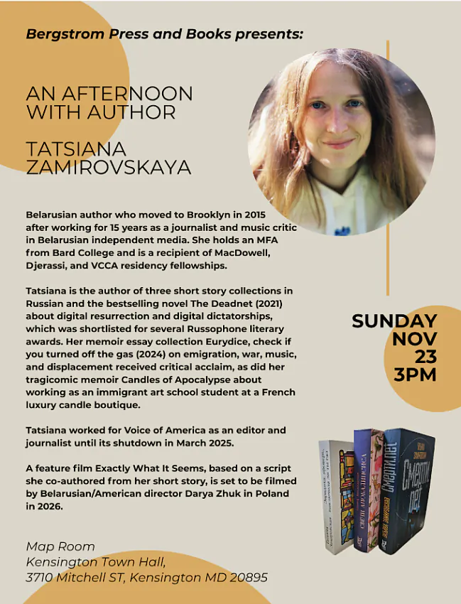 У нядзелю, 23 лістапада, у Кенсінгтане  адбудзецца сустрэча з Таццянай Заміроўскай.
