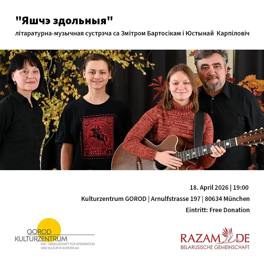 18.04.2026 19:00 - 21:00 Kulturzentrum GOROD (Arnulfstraße 197) Уваход — данаты
