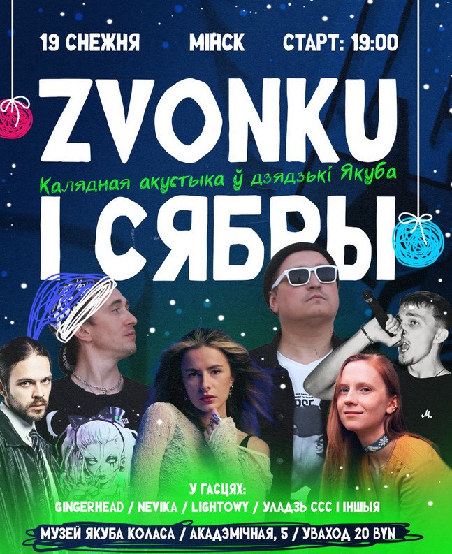 У наступную пятніцу, 19 снежня, у музеі Якуба Коласа грае калядны канцэрт гурт ZVONKU і сябры.