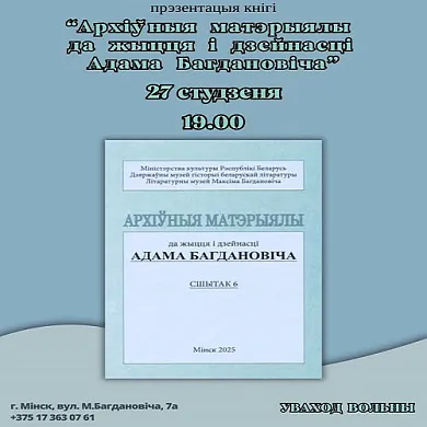 Прэзентацыя выдання «Архіўныя матэрыялы да жыцця і дзейнасці Адама Багдановіча. Сшытак 6» (12+)