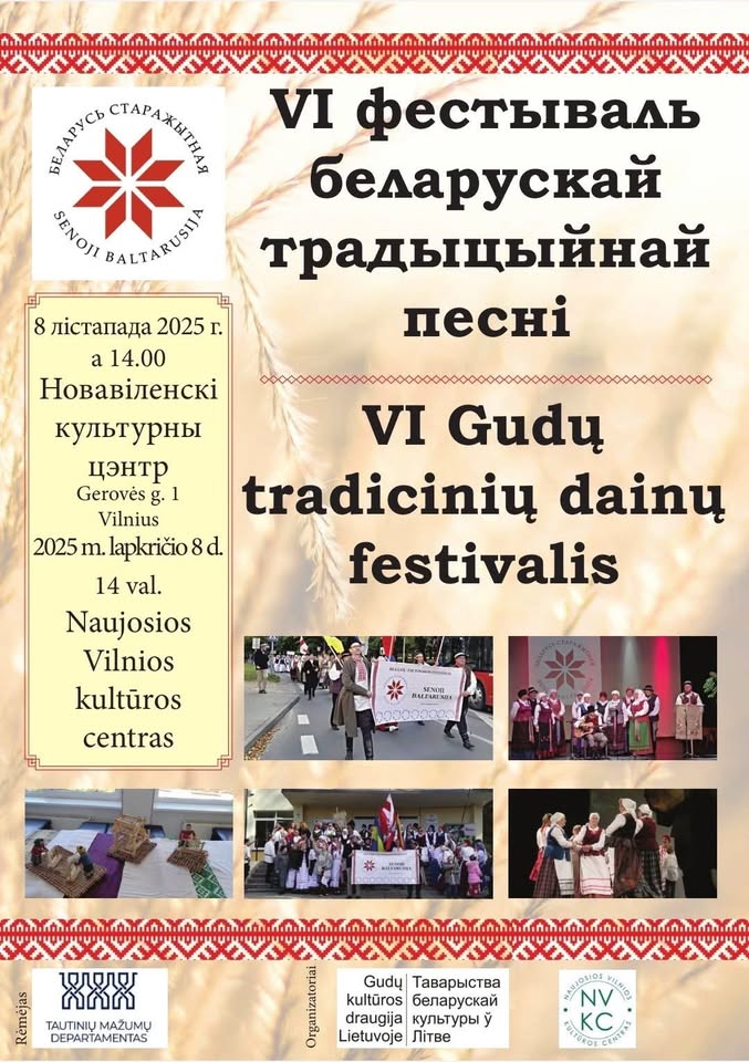 8 лістапада 2025 г. у Новавіленскім культурным цэнтры (Gerovės g. 1 Vilnius) адбудзецца 6-ы фестываль «Беларусь старажытная». Чарговым разам збяруцца беларускія, літоўскія, польскія, латышскія, украінскія фальклорныя гурты, каб прадэманстраваць сваю традыцыйную (этнічную) культуру.