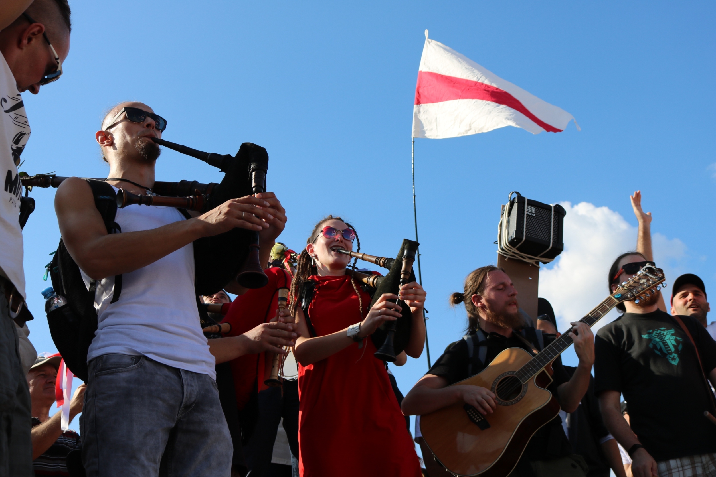 Музыкі гурта Irdorath і іх сябры на маршы 16 жніўня 2020 г. у Мінску