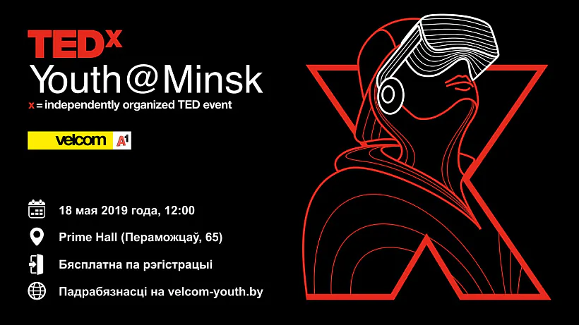 Маштабная маладзёжная канферэнцыя TEDxYouth@Minsk – адно з мерапрыемстваў лакальнага руху TEDx у Беларусі. Яму папярэднічала «дарослая» канферэнцыя TEDxMinsk, на якой удзельнікі праекта velcom YOUTH прысутнічалі ў якасці гасцей, каб на ўласныя вочы паназіраць за майстрамі публічных выступленняў, набыць карысны вопыт і прасякнуцца духам і філасофіяй TED. 18 мая на сцэне Prime Hall гэты досвед спатрэбіцца кожнаму з іх, бо галоўнымі героямі ў гэты дзень будуць яны самі і іх ідэі.