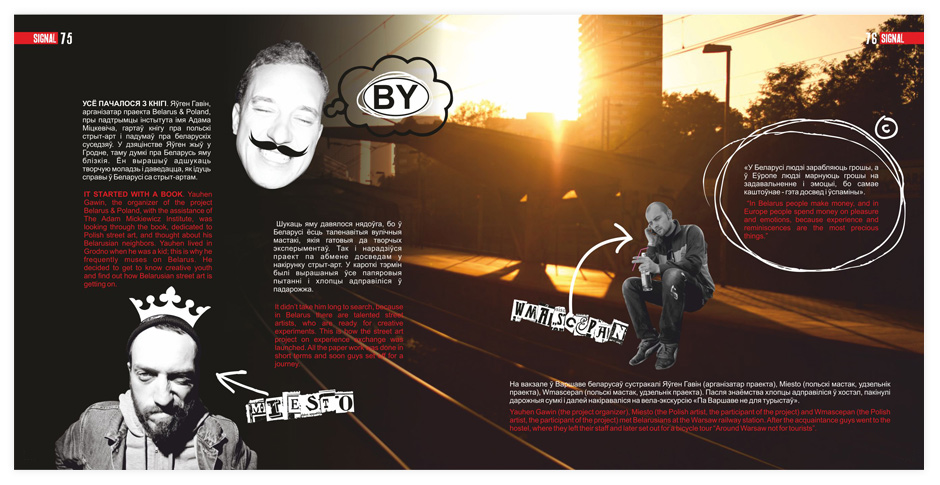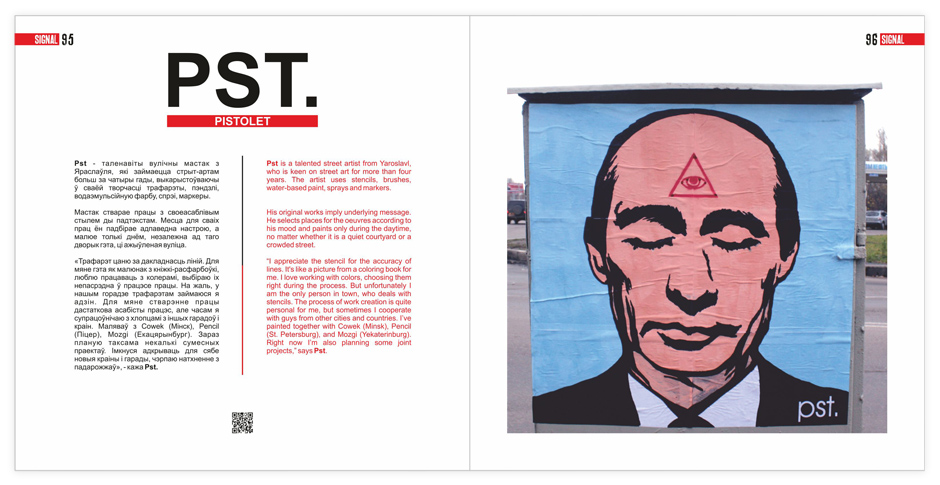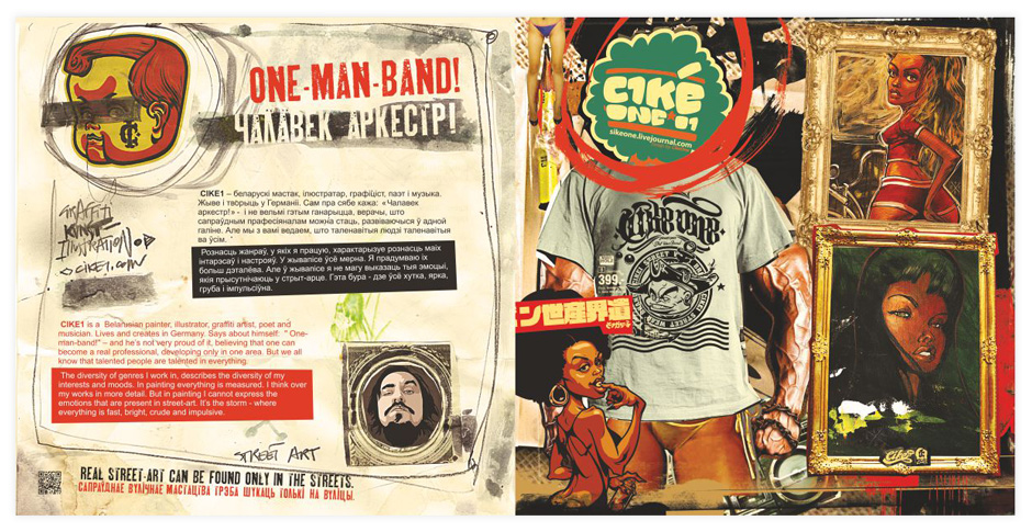 Часопіс зроблены ў выглядзе альбома, каб пазнаёміць нашых чытачоў са школай беларускага стрыт-арту. Мы знайшлі такіх людзей, гледзячы на працы якіх можна сапраўды ганарыцца тым, што яны з Беларусі.