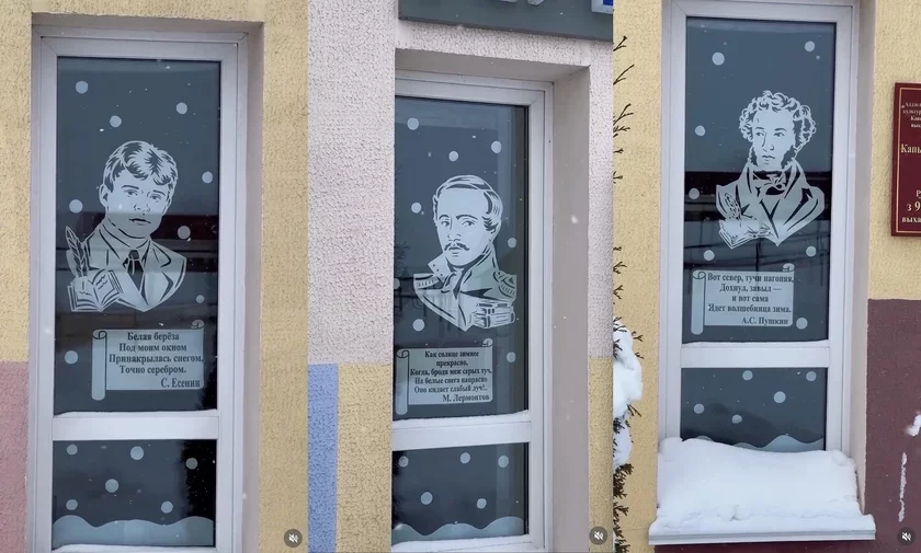 Вокны Капыльскай дзіцячай бібліятэкі ўпрыгожылі партрэтамі паэтаў і іх цытатамі. Стваральнікі экспазіцыі абралі для гэтага Аляксандра Пушкіна, Сяргея Ясеніна і Міхаіла Лермантава, заўважыла «Наша Ніва».
