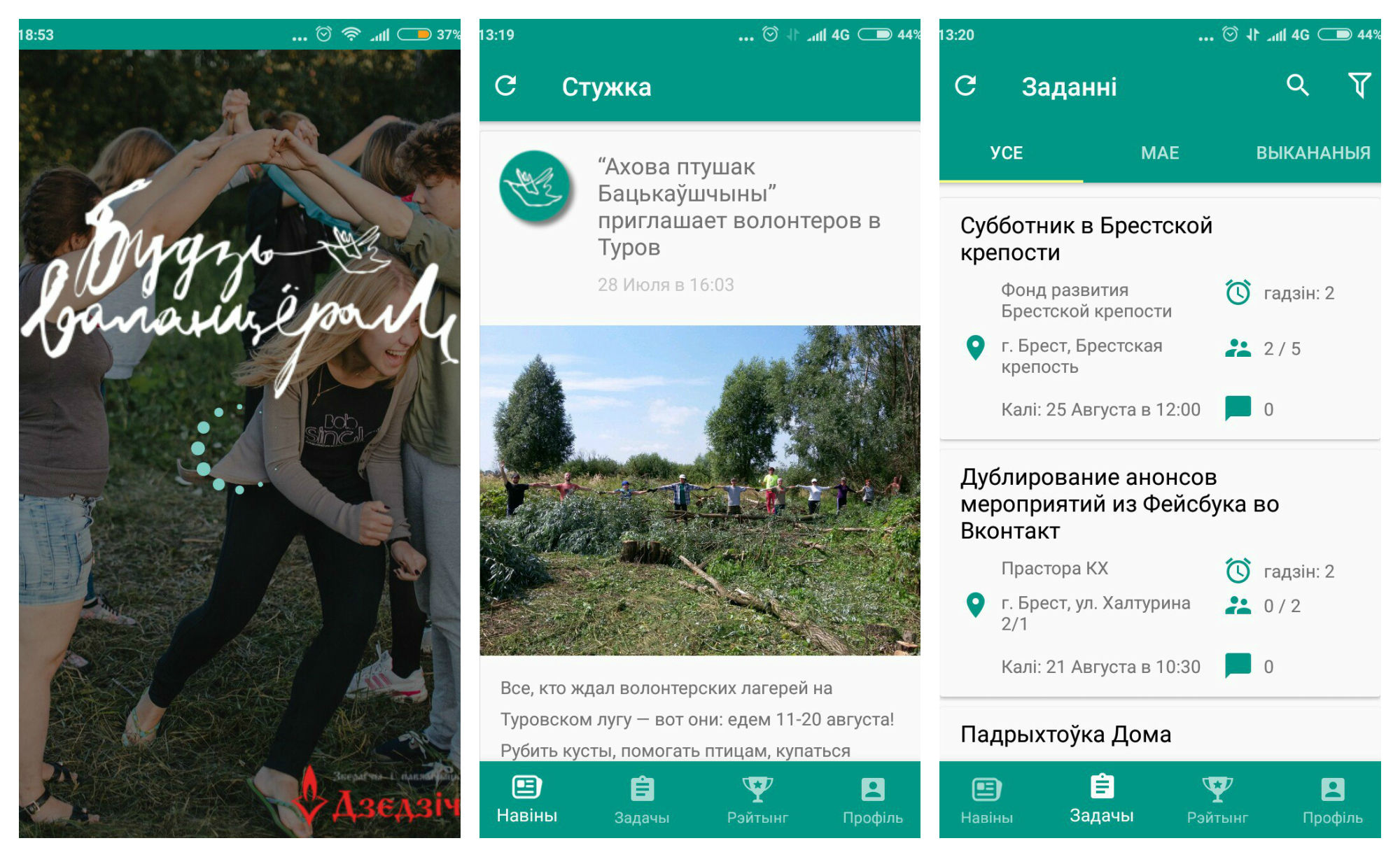 Аплікацыя “Будзь валанцёрам” працуе на аперацыйнай сістэме Android версіі 4,2 і вышэй. Функцыянал цалкам бясплатны.