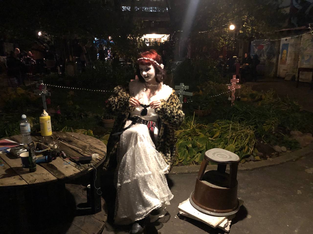 Дэкарацыі для гэтага фестывалю мы выбіралі разам з жыхарамі сквота і маёй камандай — Яраславам Кірвелем, Алексам Ацясавым: крыжы, якія тут стаяць, і гэтыя лялечкі, якіх шмат на фестывалі.
