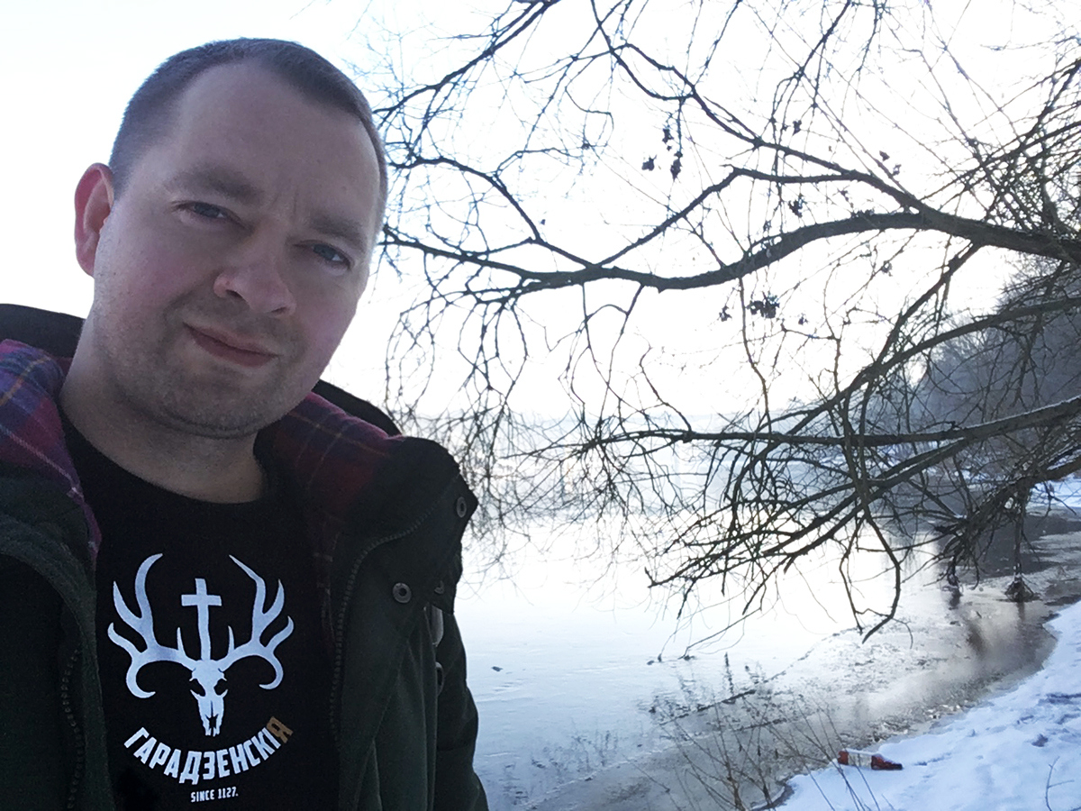 Шчасьлівы Валера Руселік — на нёманскім беразе ў Горадні, 2017 г. Фота аўтара