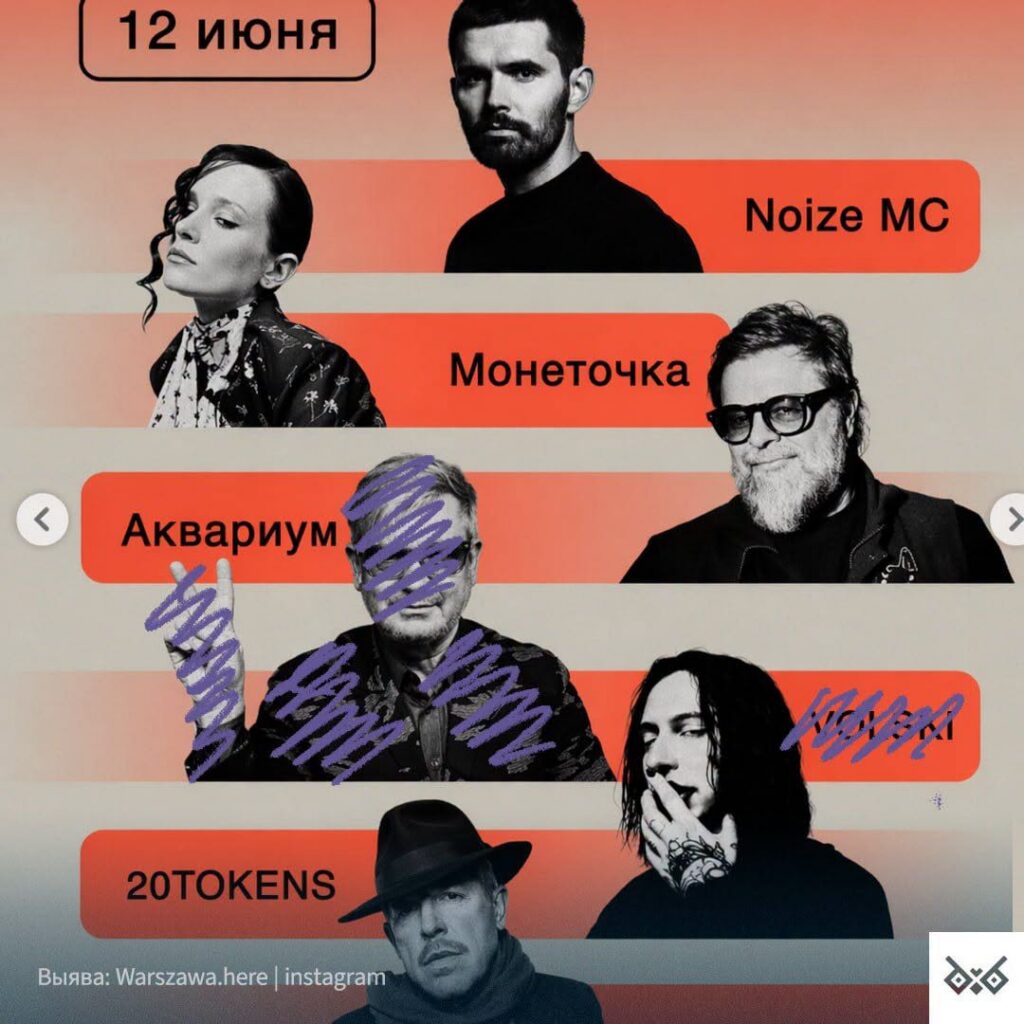 У афішы заяўлены вядомыя артысты, якія выразна выступілі супраць вайны: «Машина времени» (Андрэй Макарэвіч), «Аквариум» (Барыс Грабеншчыкоў), Noize MC, Манетачка, «Би-2», «Каста» і іншыя.