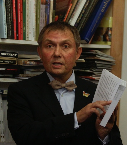 Ужо за паўгадзіны да пачатку прэзентацыі ў кнігарні “ЛогвінаЎ” сабралося багата публікі. Аўтар прапанаваў дарма не губляць часу ды падпісваць кнігу. “След матылька” раздаваўся ўсім абсалютна бясплатна, як і ранейшыя 22 кнігі з серыі “Бібліятэка Свабоды”. За хвілін 10 да пачатку ў кнігарню было ўжо не праціснуцца. Яе гаспадар Ігар Логвінаў нервова курыў на ўваходзе ды прапаноўваў паставіць калонкі, як у касцёле, каб можна было слухаць прамовы з прэзентацыі. Некаторыя схітраліся зазіраць у акно, нехта слухаў па чарзе, усунуўшы паўгалавы ў памяшканне.