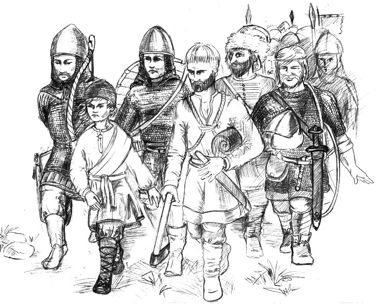Іхны соцыум зусім не падобны на наш, іхны Менск – не наш Менск. Нас тут два мільёны, іх – некалькі тысяч, усе адно аднаго ведаюць. Таму ёсць гарадская структура арганізацыі ў паходы “ваеннаабавязанага насельніцтва”. Вуліцу, на якой давялося жыць сям’і Неціміра, напрыклад, збірае і арганізуе каваль – найбольш вопытны і спрактыкаваны ваяр, які, пры гэтым, мае цывільную прафесію. Разам з тым каваль ведае, што такое вайна і нават у мірны час займаецца пачынкай рыштунку для дружыннікаў – свой чалавек для князя.