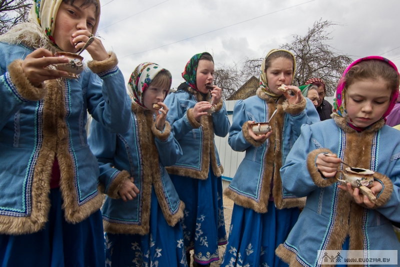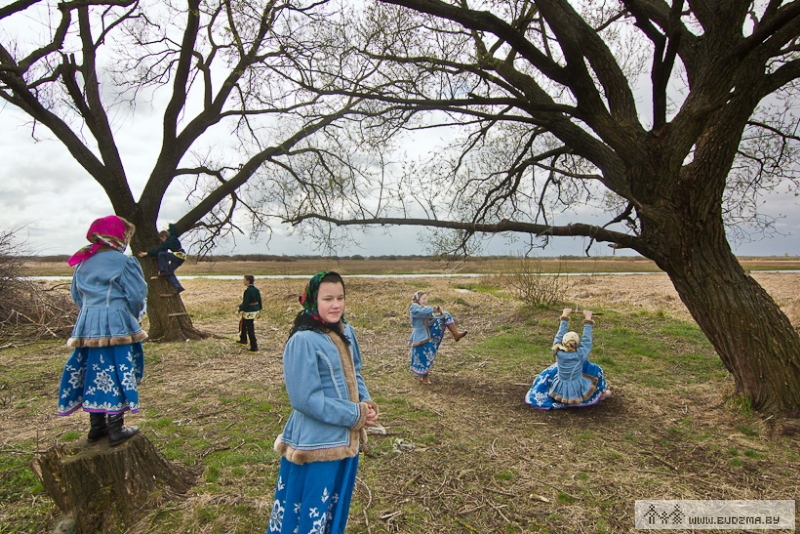 Між тым спявачак па дарозе сустракаюць перашкоды — дзе вяроўка, дзе дрот нацягнуты. Гэта жыхары вуліцы, што жывуць бліжэй да ракі, іх нацягнулі. Жанчыны рвуць перашкоды, бо яны сімвалізуюць путы зімы. І праганяюць зіму за раку, спяваючы: “Іды, зіма, до Добучэва, ты ж нам надокучыла! Всі волокы порвала, постолы потоптала”. Некаторыя бягуць да вады і хапаюць у ёй якую-небудзь расліну: у каго даўжэйшая, у той, лічылі раней, вырасце доўгі лён. А цяпер жанчыны мераюцца, хто з іх будзе ўдачлівейшай ва ўсіх справах. Праўда, сёлета моцнага разліву ракі няма, ды і надвор’е халоднае, таму ахвочых разуцца і забегчы ў ваду не знайшлося.