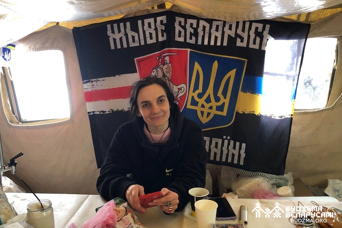 «Проста ў адзін момант з’явілася ідэя — адкрыць Пункт Нязломнасці. Мы пачалі шукаць намёт, шэрыя вайсковыя намёты, але не знайшлі. Потым зразумелі, што патрэбныя грошы. А адкуль іх узяць? У нас няма. Я працую ў Кіеве таксісткай. Таксама і ўсе нашы валанцёры працуюць хто дзе. У нас няма грантаў.