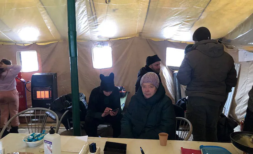 Адна жанчына, сустрэўшы ў намёце другую, даведваецца, што ацяплення ўжо не будзе да канца 2026 года. Ёй цяжка стрымаць эмоцыі.