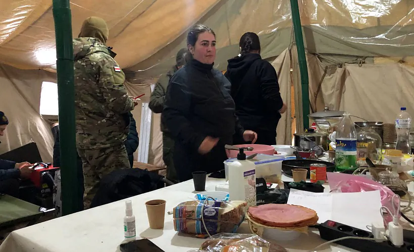 «Пасля размоў з людзьмі, якія да нас прыходзілі, высветлілася, што некаторыя ядуць толькі бутэрброды, бо дома ў іх няма цяпла, святла, а ў многіх няма і газу, — дзеліцца Алена. — І тады мы вырашылі, што ў нас заўсёды павінен быць боршч, заўсёды павінна быць бульба. Мы гатуем ежу, кормім усіх, хто прыходзіць. Кожны можа сагрэцца і паесці ў нашым намёце».