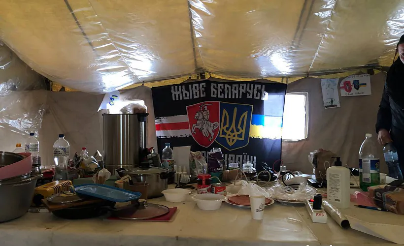 Боршч, гарачая гарбата, дзіцячыя малюнкі на сценах намёта і беларуска-ўкраінскі сцяг. У адным з самых небяспечных раёнаў Кіева працуе Пункт Нязломнасці, арганізаваны беларусамі. Budzma.org наведала гэтае месца — прастору падтрымкі, сустрэч і ўзаемнай дапамогі — і дзеліцца ўражаннямі з чытачамі.