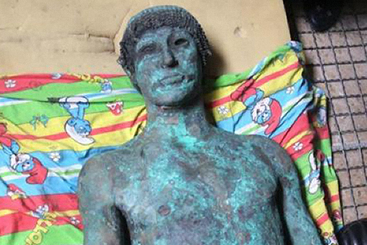 Рыбак па імені Джуда Граб, які жыве ў сектары Газа, вылавіў у моры старажытную статую яшчэ ў мінулым жніўні, але вядома пра знаходку стала толькі ў лютым гэтага года. Паводле версіі рыбака, ён убачыў недалёка ад берага абрысы чалавечага цела і пры дапамозе сваякоў выцягнуў 500-кілаграмовую статую на бераг. Праўда, спачатку Граб вырашыў, што статуя з золата, і адрэзаў ёй адзін палец, каб аднесці на экспертызу знаёмаму ювеліру (іншы палец употай ад яго адрэзаў яго брат). Статуя аказалася з бронзы, і тады рыбак выставіў яе на eBay за 500 тысяч даляраў (умова — самавываз з Газы), пасля чаго яго неадкладна накрылі людзі з ХАМАС і канфіскавалі знаходку. Публічна яе з тых часоў не выстаўлялі, статую вывучаюць эксперты, а свету засталася толькі фатаграфія на фоне легкадумнага ручніка са смурфікамі. Але спецыялісты ў страшным хваляванні: антычных бронзавых статуй да нашага часу амаль не дайшло, пры тым, што большасць знаёмых нам па рымскіх мармуровых копіях статуй былі менавіта бронзавымі. Падобным чынам у 1926 годзе былі выяўленыя знакамітыя скульптуры Пасейдона (або Зеўса) і вершніка з канём ля мыса Артэмісіён. Пакуль зразумела, што гэта хутчэй за ўсё выява аголенага бога Апалона з характэрна адведзенай убок правай рукой, а выкананая статуя ў перыяд прыкладна з V стагоддзя да н.э. да I стагоддзя да н.э. Аповед рыбака эксперты падвяргаюць сумневу: статуя не пакрытая ракавінкамі, амаль не пашкоджана карозіяй — увогуле, падобна, што знайшлі яе не ў моры, а дзе-небудзь яшчэ.