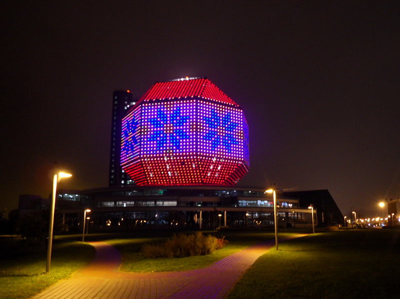 Тое, што можна было зрабіць і па-іншаму, у гэтыя ж дні прадэманстравалі ў гандлёвым цэнтры Dana Mall, дзе навагодняя інсталяцыя цёплая і беларуская: з Казой і батлейкай, з арнаментам і зубрам, з беларускамоўнымі подпісамі.