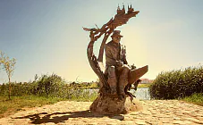 Помнік Сымону Буднаму ў Нясвіжы і выдадзены ў гэтым горадзе ягоны «Катэхізіс». Фота: Wikimedia Commons / калаж «Наша Нівы»