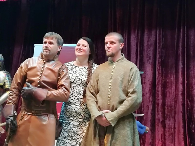 А жыхары Новінаў адарваліся ад сваіх спраў, каб прыйсці на творчую сустрэчу з сябрамі культурніцкай кампаніі “Будзьма беларусамі!” – спадаром Андрэем Мельнікавым і сапраўднымі шляхцюкамі Андрэем Дундуковым і Юрыем Усціновічам. Імпрэза арганічна спалучыла ў сабе музычна-літаратурны і гістарычны элементы. Патрыятычныя песні спадара Андрэя дапаўняліся расповедам пра зброю і даспех нашых продкаў, з дапамогай якіх мужныя ваяры не раз адстойвалі свабоду роднай старонкі. А рамантыка вобраза слаўнага рыцара падтрымлівалася лірычнымі творамі вядомага барда. Усё гэта перамяжалася пытаннямі па гісторыі і культуры Беларусі. Выступоўцы былі прыемна здзіўлены дазнанасцю гледачоў у літаратурнай спадчыне – і дзеці, і дарослыя з лёгкасцю назвалі шмат беларускіх пісьменнікаў.
