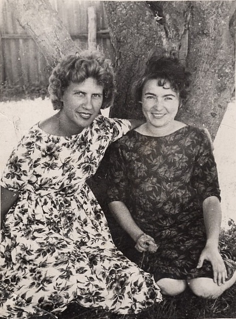 Днямі я да Марыі завітала і заадно вырашыла паставіць кропку з валошкавай сукенкай. Цёця Марыя ахвотна дапоўніла карціну. Такім чынам я даведалася, што сукенка была з чыстай шэрсці, і ніводнае адзенне так не любіла Марыя, як яе. Кажу: “Цёця Марыя, каб вы ведалі, якая вы прыгожая на здымку ў гэтым нарадзе!” Смяецца. Але прызнаць сябе прыгожай не згаджаецца. Я думаю, ну, калі такая самакрытыка, дык скажу і пра тое, што мама памятае толькі два моманты найвышэйшай прыгажосці сярэдняй сястры: з чырвонай ружай і ў Вільні з кілбасой у паласатай футры. Марыя, як і чакалася, акунаецца ва ўспаміны: