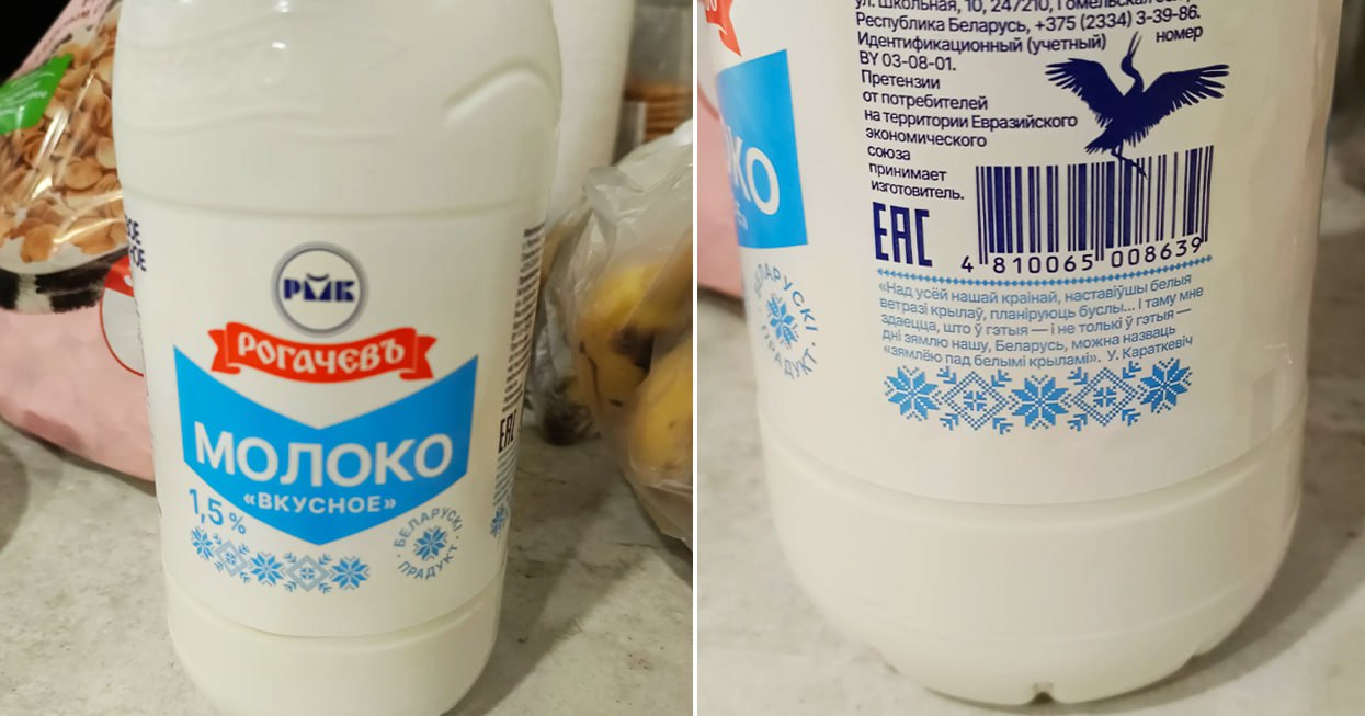 Беларус паказаў у Threads, што на бутэльцы рагачоўскага малака на адваротным баку надрукаваны ўрывак з нарысу Уладзіміра Караткевіча «Зямля пад белымі крыламі».
