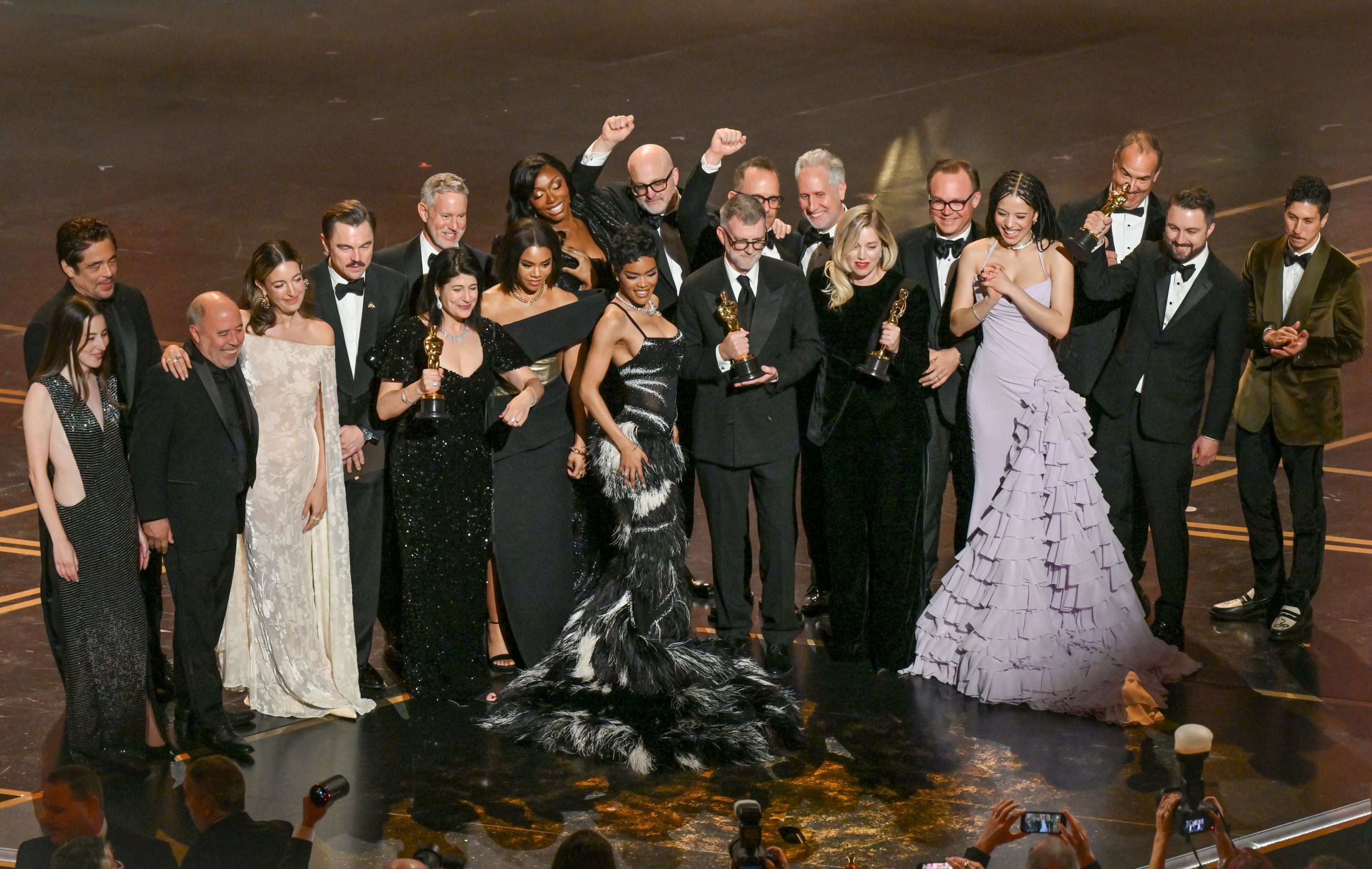 Бенісіё дэль Тора, Пол Томас Андэрсан і Леанарда Дзі Капрыа. Фота: John Shearer/98th Oscars/Getty Images The Academy via Getty Images