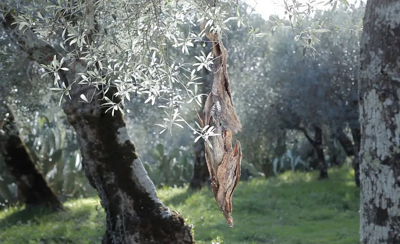 Фільм здымаўся побач з абацтвам Монтэ-Касіна ў старажытным аліўкавым гаі. Я выбрала гэтае месца, бо мяне ўразілі аліўкавыя дрэвы: яны могуць тысячу гадоў расці, змяняць форму. І гэтай формай яны ўвасабляюць мудрасць і складанасць быцця, і сам прынцып росту. Такое форматварэнне прысутнічае і ў маім праекце — як кокан, як спосаб успрымання праз усе пачуцці, уласцівыя для цела...
